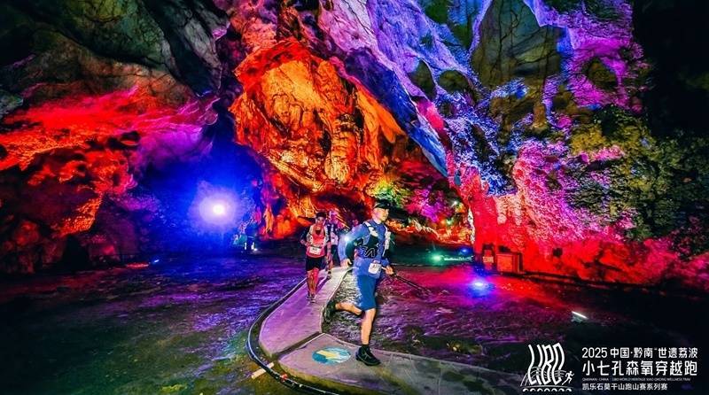 选手跑过天钟洞,感受喀斯特溶洞的奇幻壮丽。