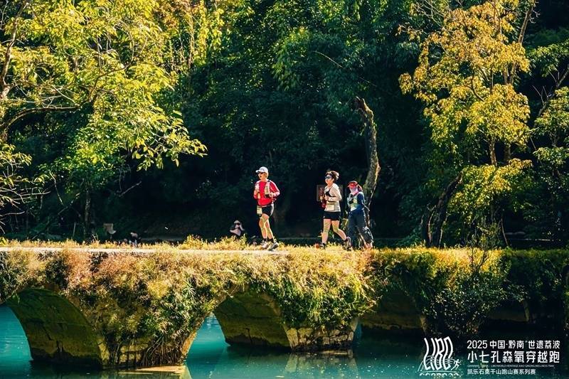 选手们跑过小七孔古桥,灵动的身影与古桥相映成趣。