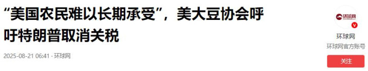 8月19日,美国大豆协会的联名信像一颗炸弹投向白宫。信中警告特朗普:“如果秋天结束前还谈不成协议,明年美国大豆种植面积可能锐减20%。”协会主席凯莱布·拉格兰在记者会上红着眼眶说:“农民已经撑不住了,我们需要实实在在的订单,不是空头支票!”